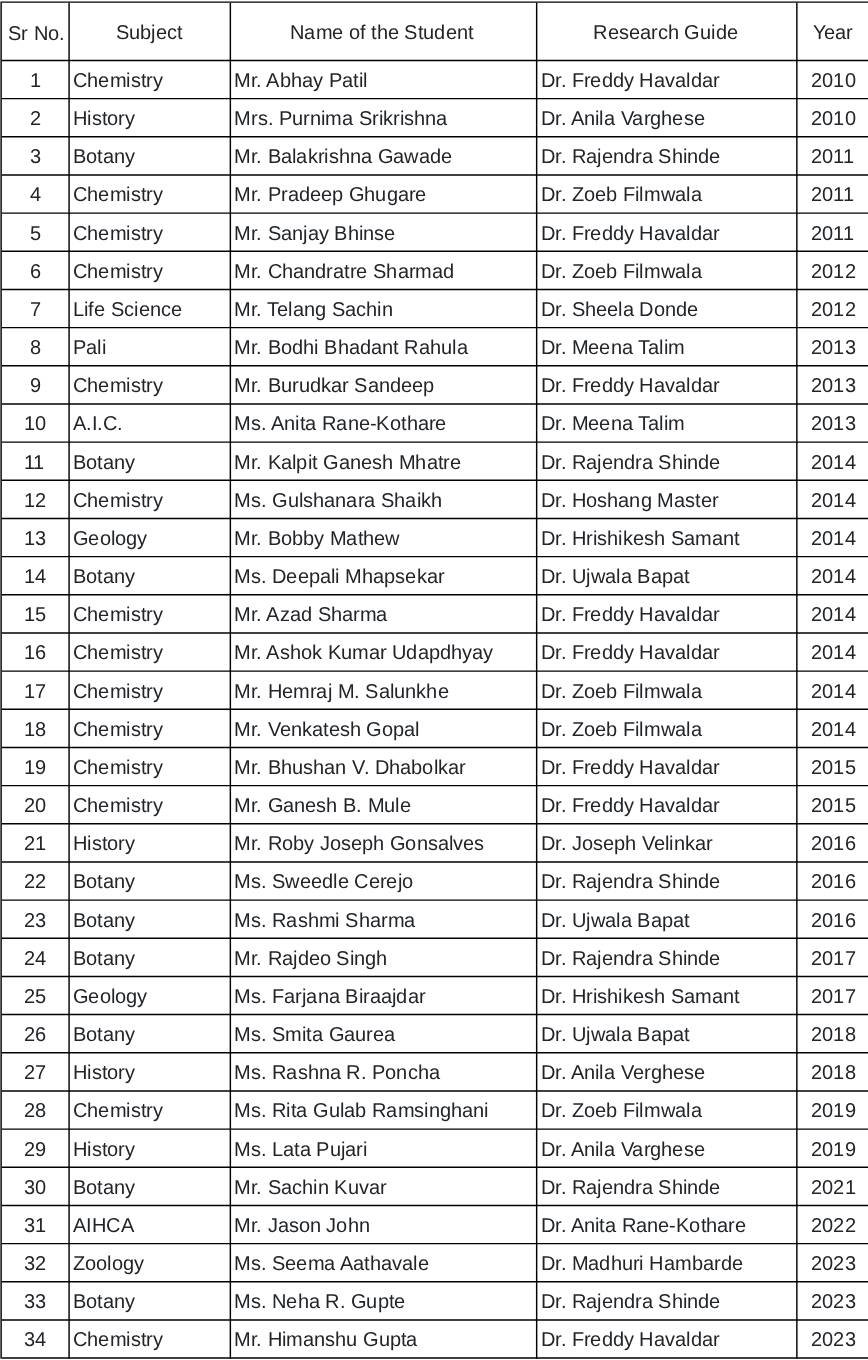 List of Ph.D. Scholars awarded Ph.D. from 2010 onwards